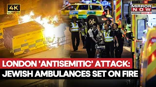 An arson attack in Golders Green, North London, left four Hatzolah ambulances set alight in what police are treating as an antisemitic hate crime. The blaze began around 1:40 AM GMT, causing cylinders inside the vehicles to explode and damaging nearby buildings. Residents were evacuated as a precaution, with no injuries reported. Fire crews had the situation under control by 3:06 AM. Police are searching for three suspects, reviewing CCTV footage, and increasing patrols.